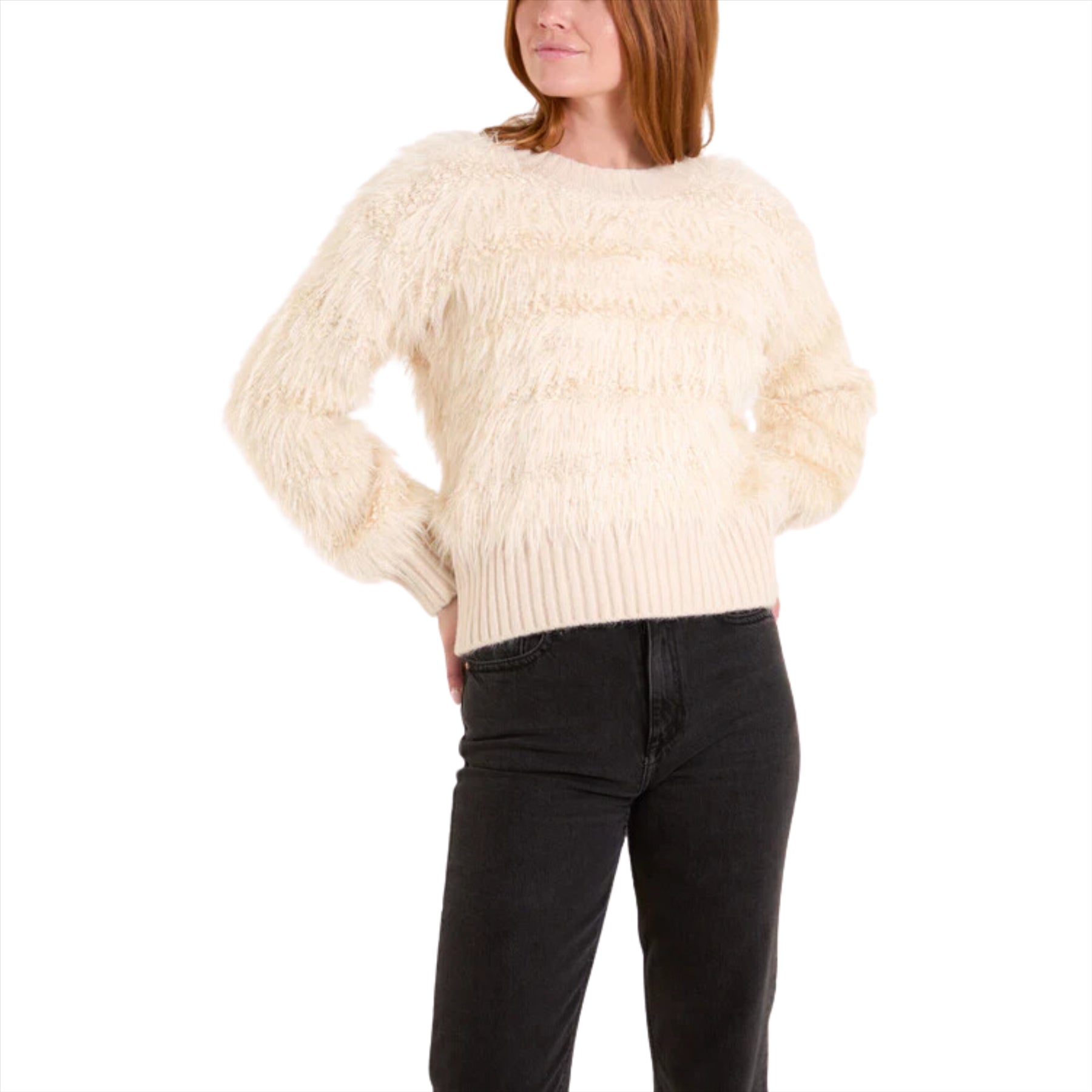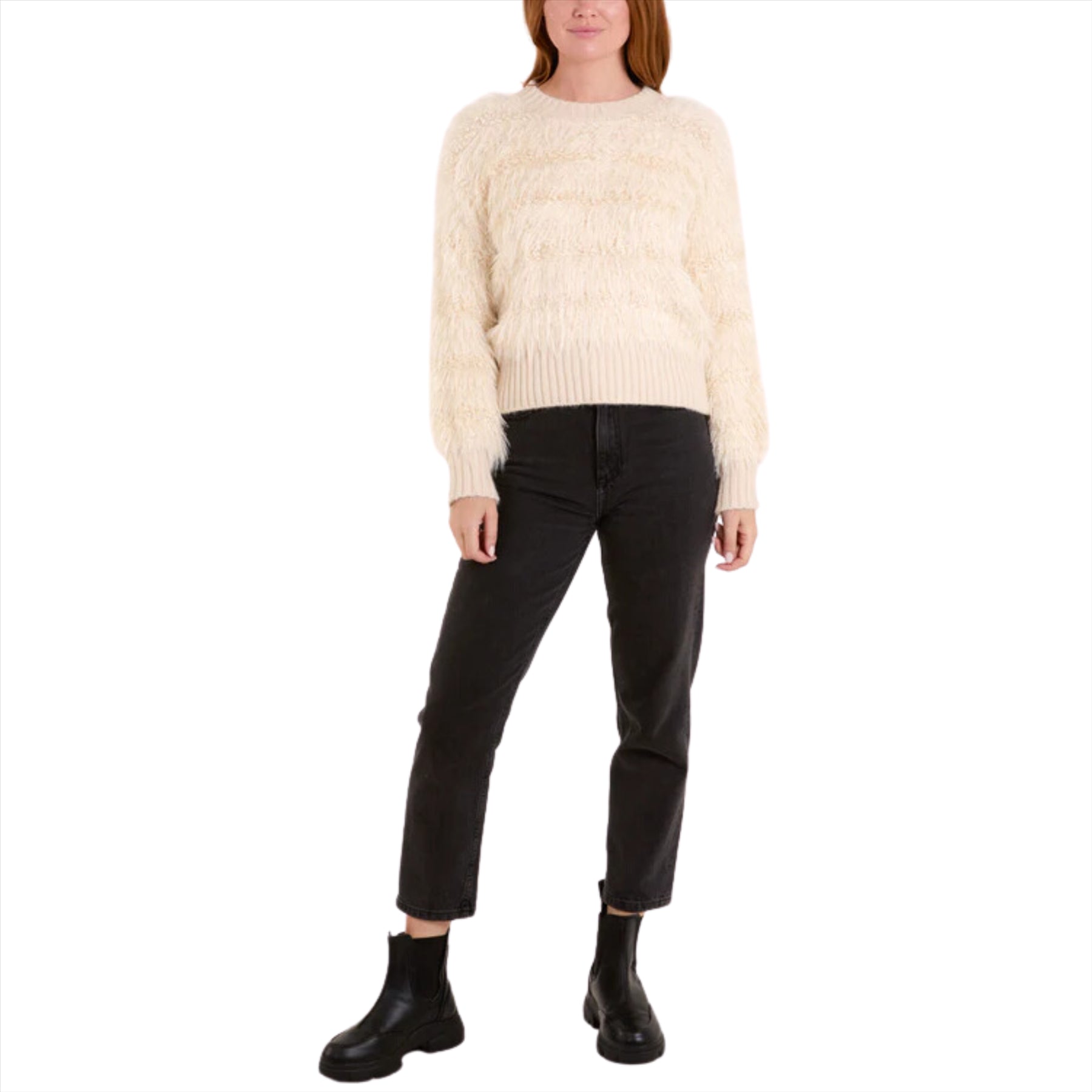 Sparkly & Fluffy Contrast Stripe Jumper | Stone