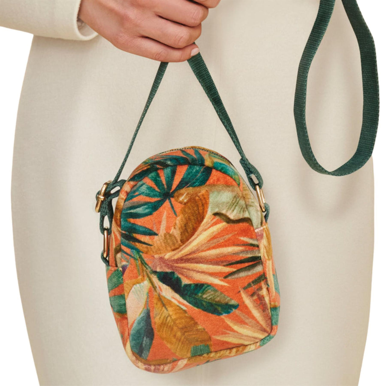 • Powder Painted Palms Velvet Crossbody Bag | Tangerine