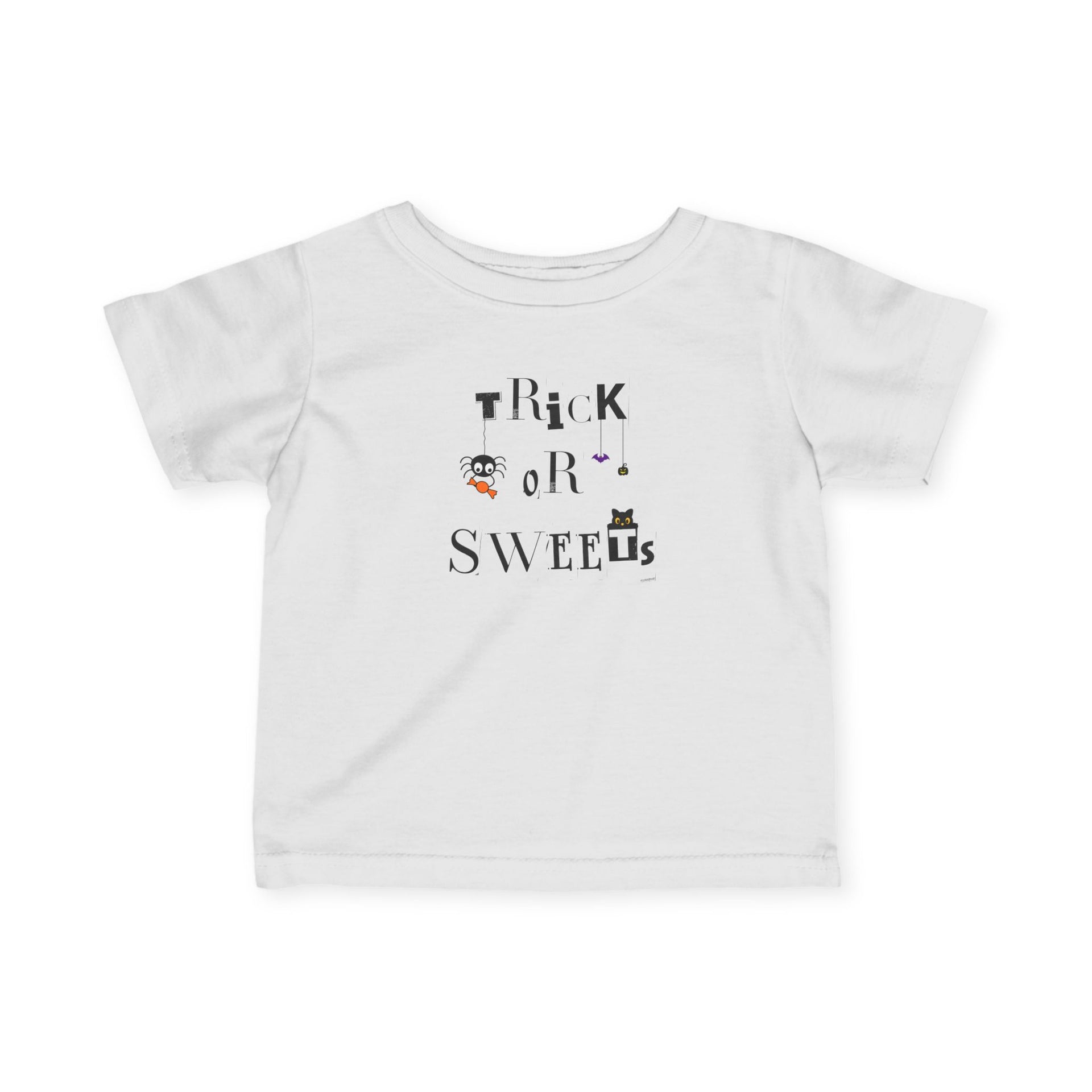 Made from a soft, high-quality cotton blend, this T-shirt feels gentle on the skin while standing up to all-day play. Featuring the cheeky “Trick or Sweets” slogan across the front, it’s a fun and spirited addition to any Halloween outfit – a great gift for siblings, cousins, or school friends.