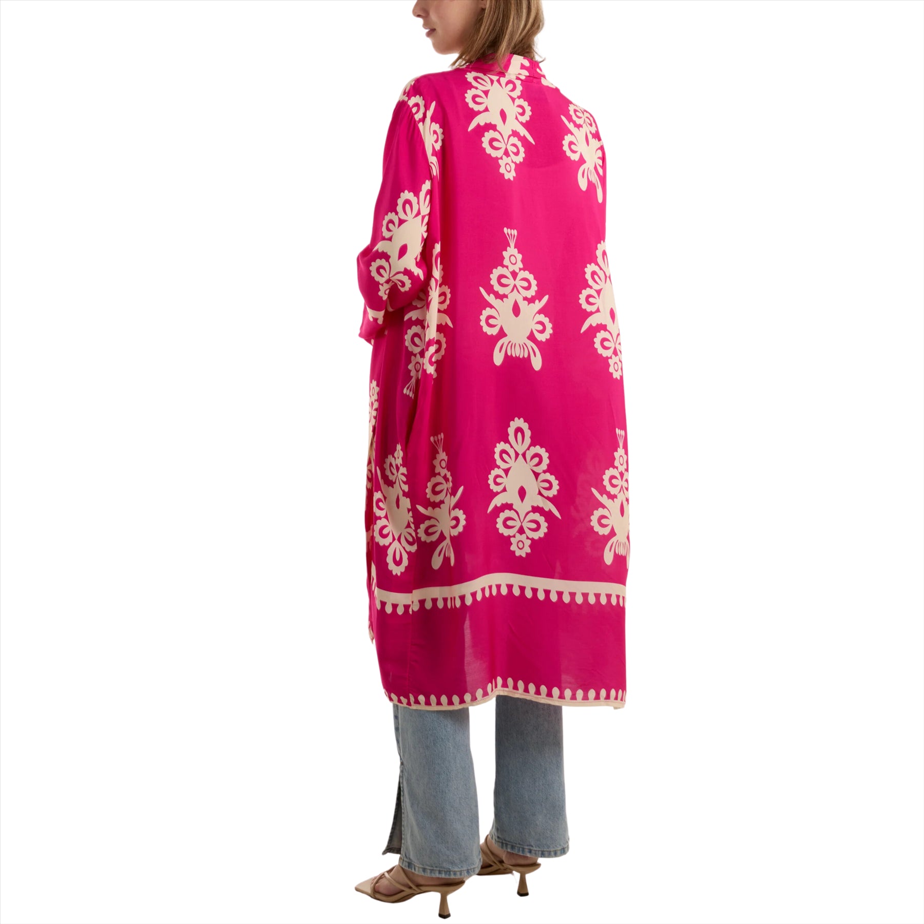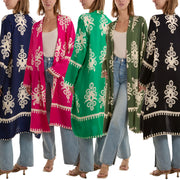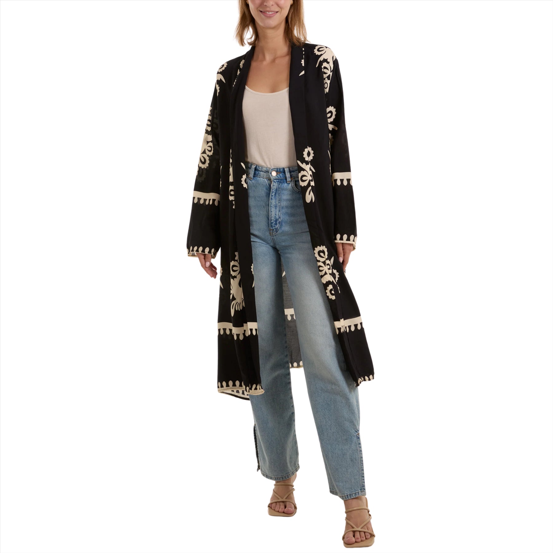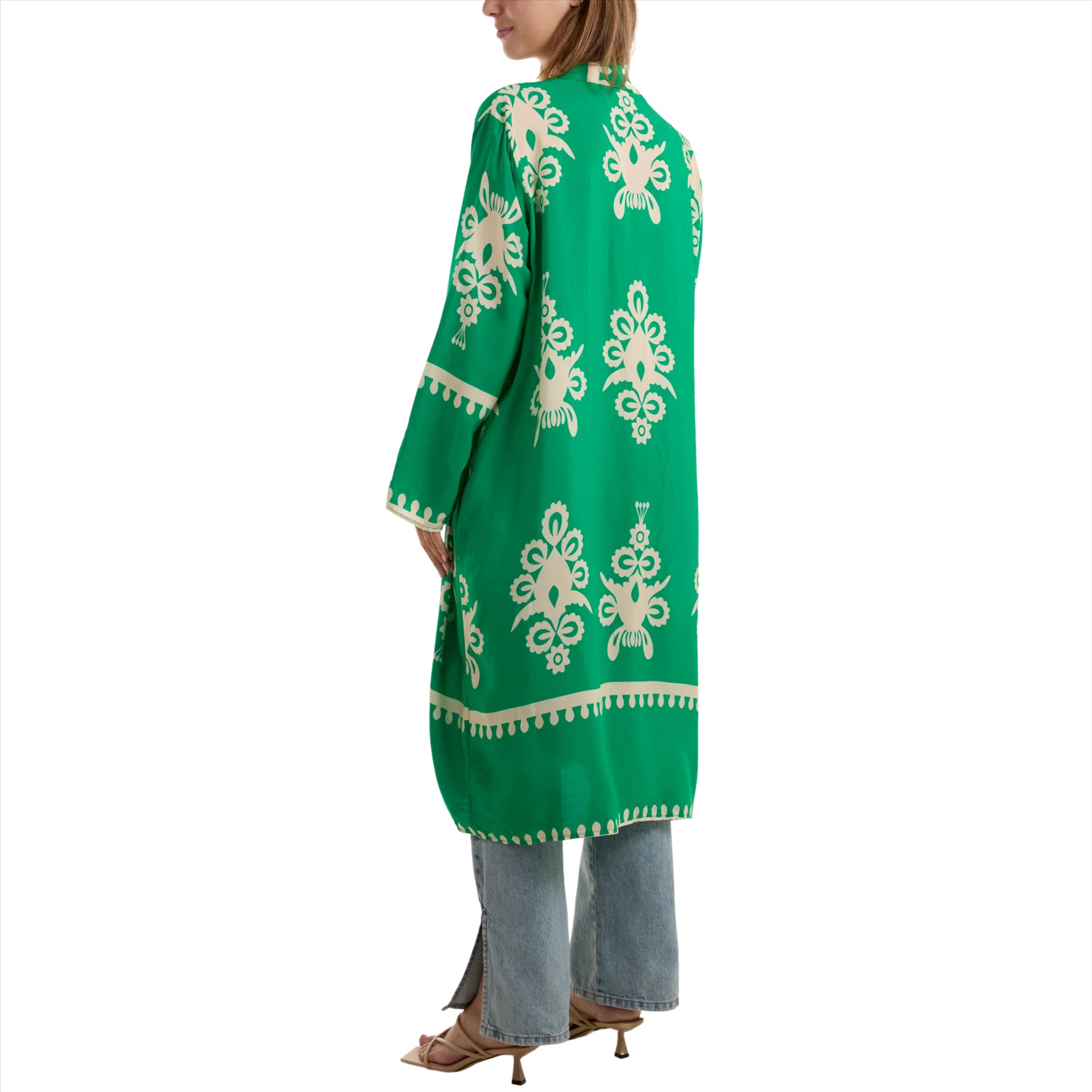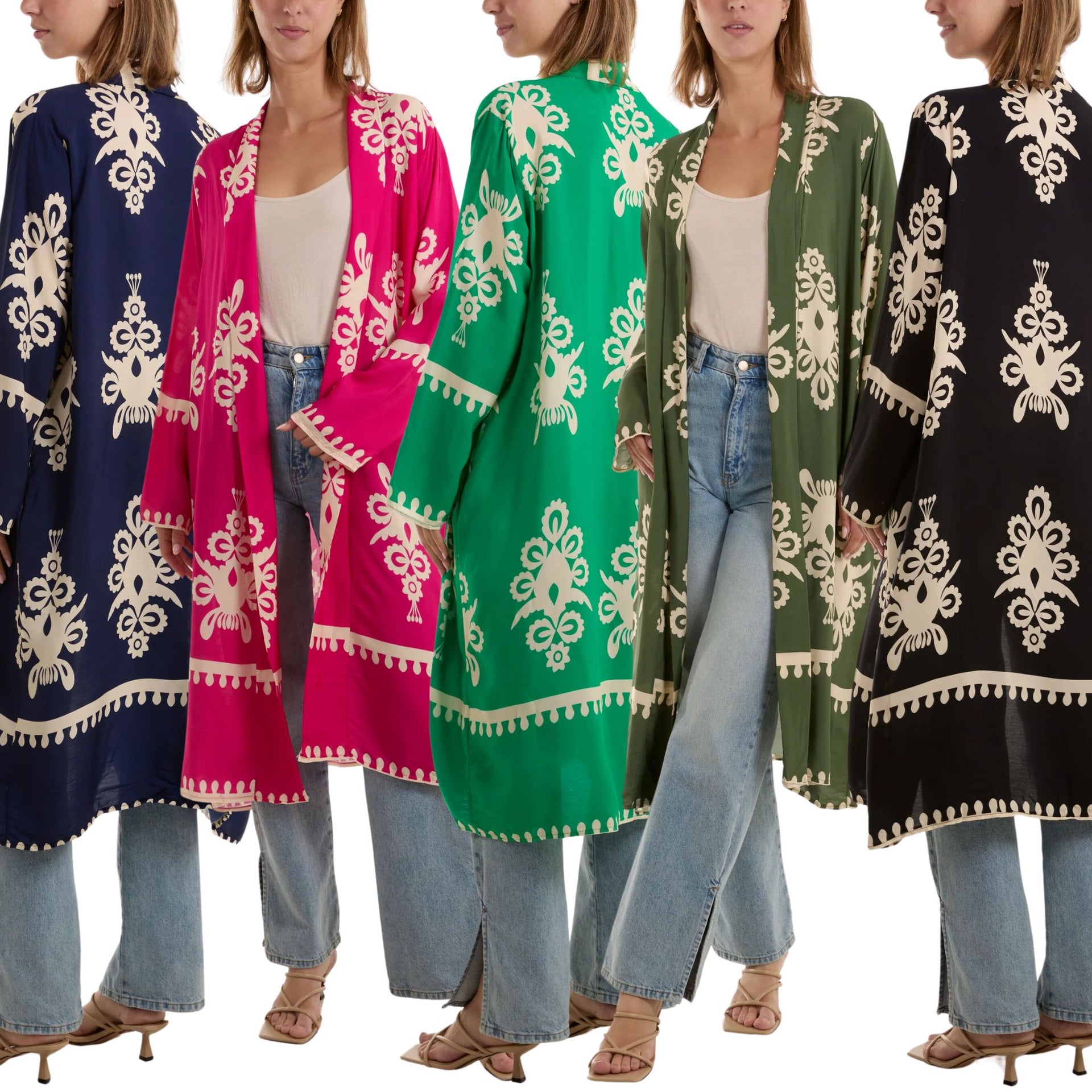 This longer length kimono is crafted from a floaty, lightweight material and is an easy throw-on over any outfit.  This versatile jacket will easily take you from beach to bar and will look fab over jeans and a plain tee too.  Not only does it have a fabulous baroque print and gorgeous colour options, it has pockets too!  We all love a pocket here at SBoutique and can't wait for the weather to turn warmer so we can pop our kimono on and head for the sun. The only problem will be which colour to choose.