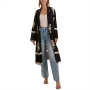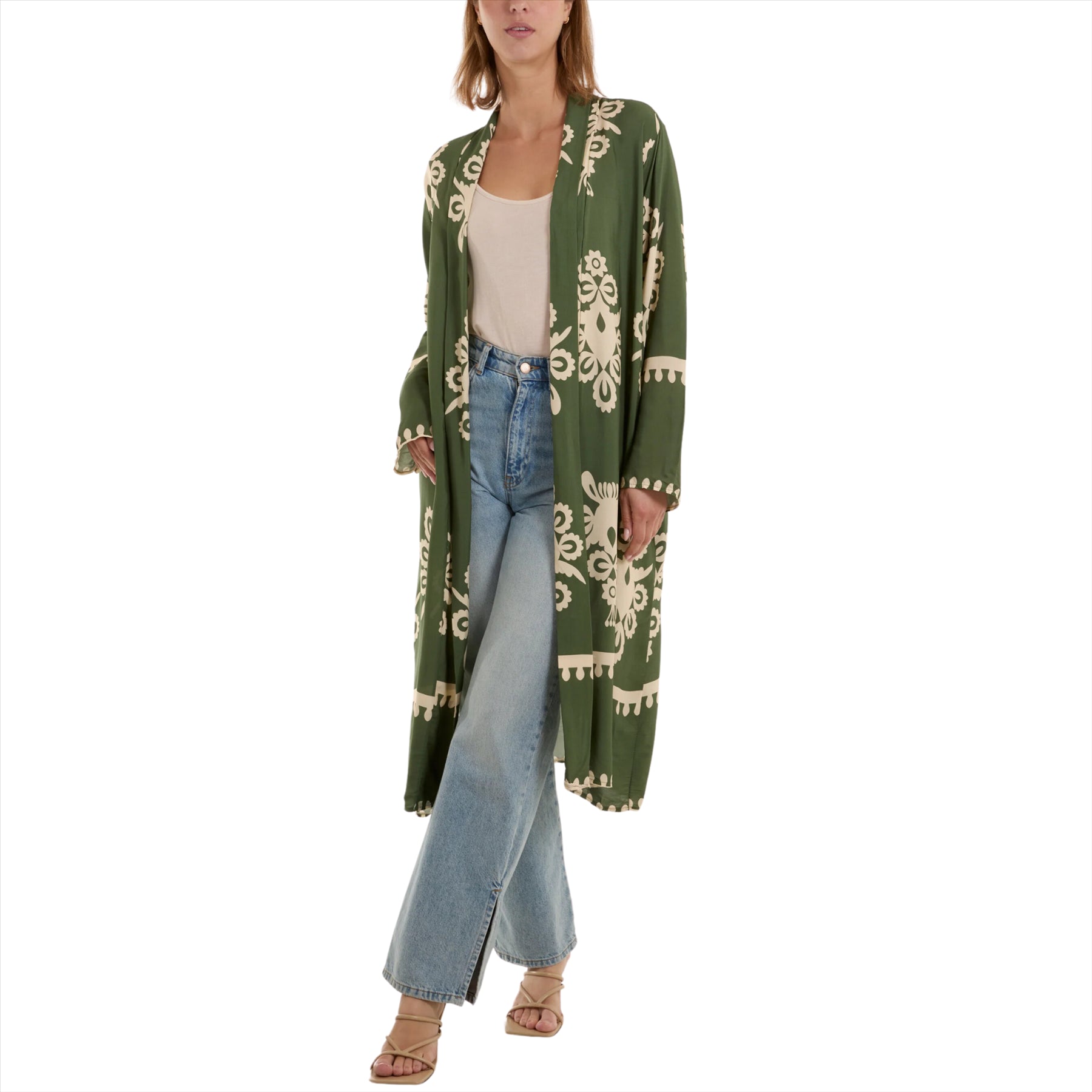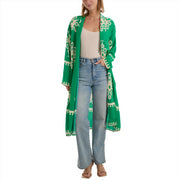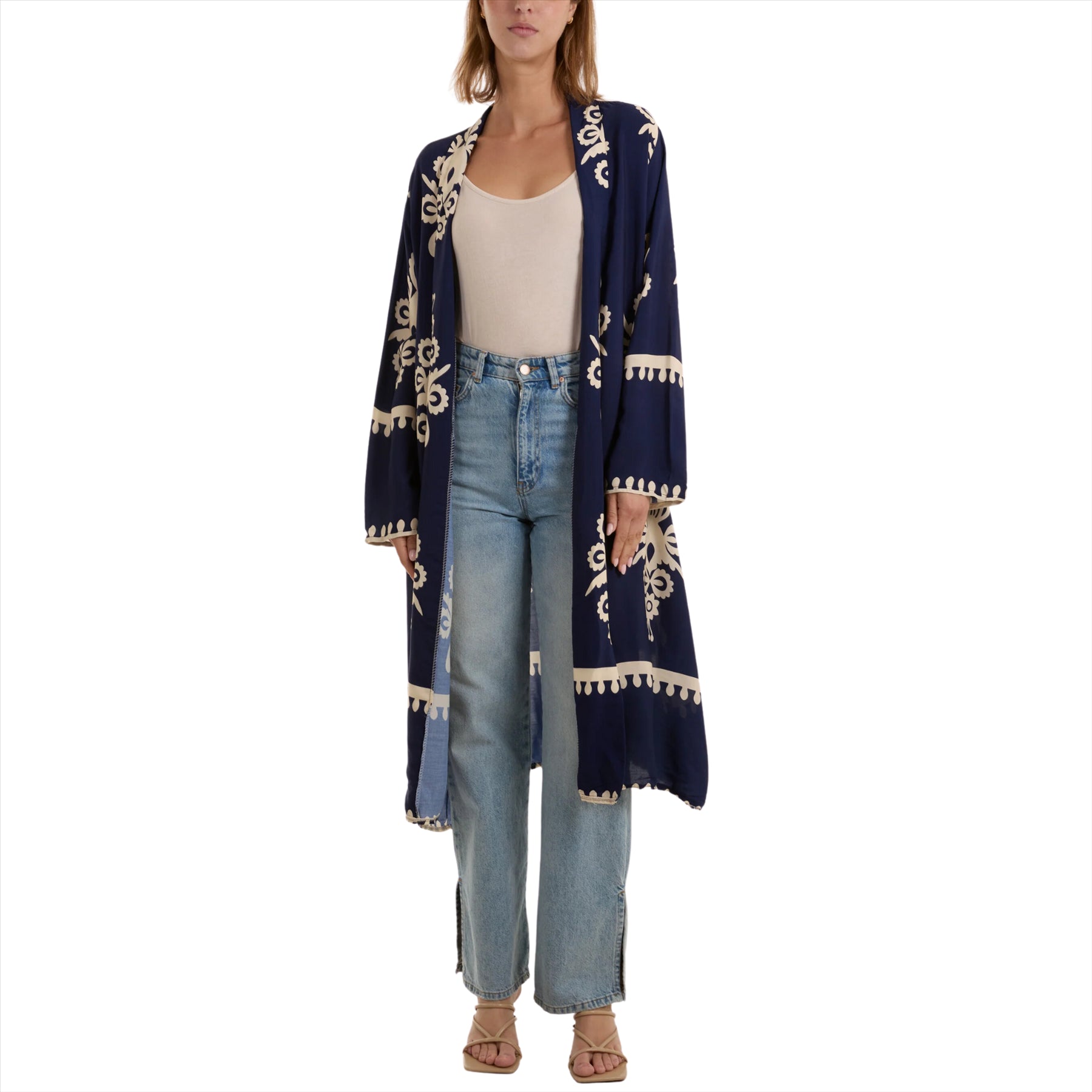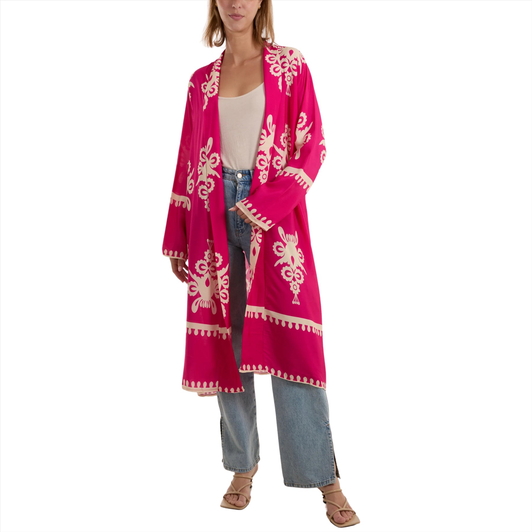 This longer length kimono is crafted from a floaty, lightweight material and is an easy throw-on over any outfit.  This versatile jacket will easily take you from beach to bar and will look fab over jeans and a plain tee too.  Not only does it have a fabulous baroque print and gorgeous colour options, it has pockets too!  We all love a pocket here at SBoutique and can't wait for the weather to turn warmer so we can pop our kimono on and head for the sun. The only problem will be which colour to choose.