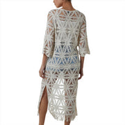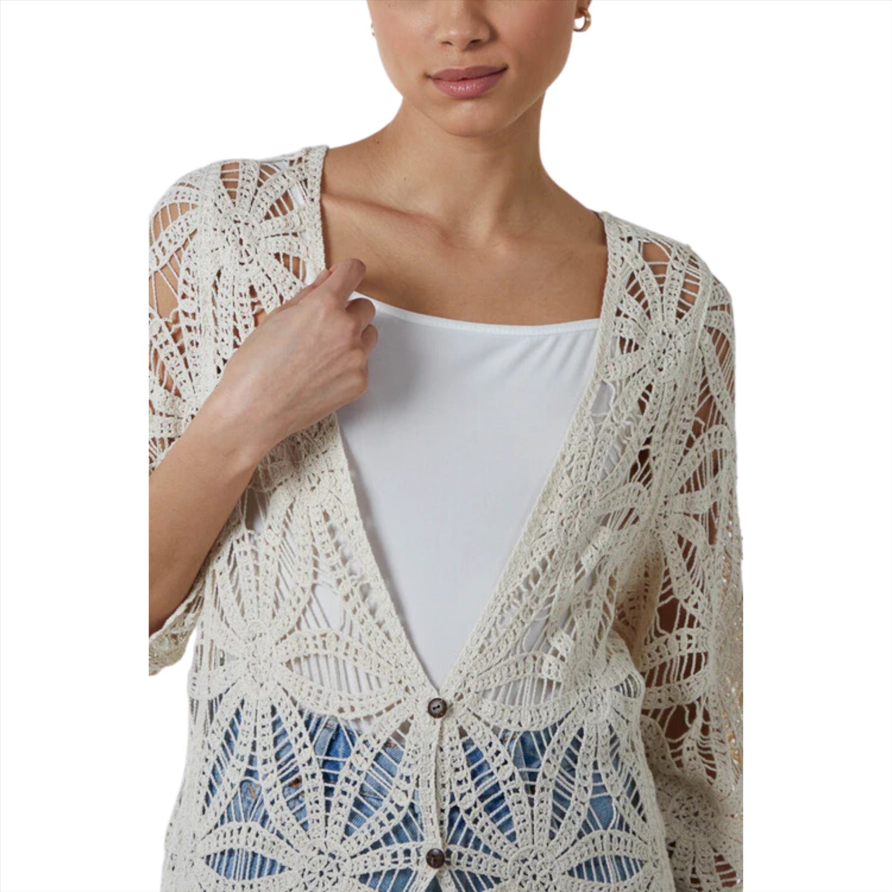 Crochet Button Up Floral Longline Kimono Cardigan | Ivory