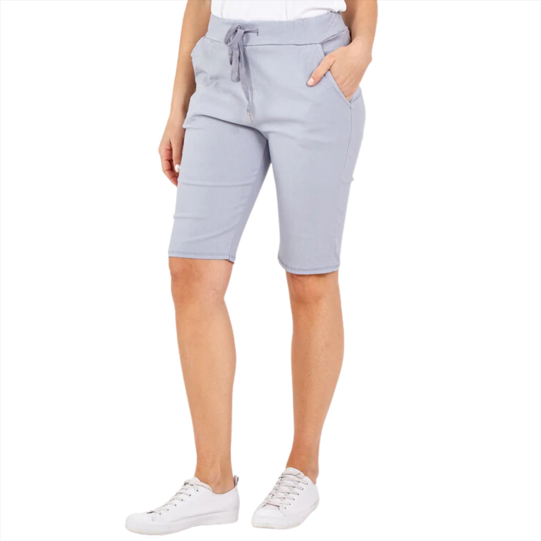Fans of our magic trousers will be thrilled to see that they now come in a shorts version too! Super stretchy, these Italian designed shorts have a soft elasticated waistband with drawcord which means they fit literally any size or shape. They are extremely comfortable and flattering, have two side pockets and look great rolled up or worn to the knee. They come looking crinkled, but as soon as you slip them on, the crinkles disappear, just like magic. Best suited to UK Sizes 10 - 16.