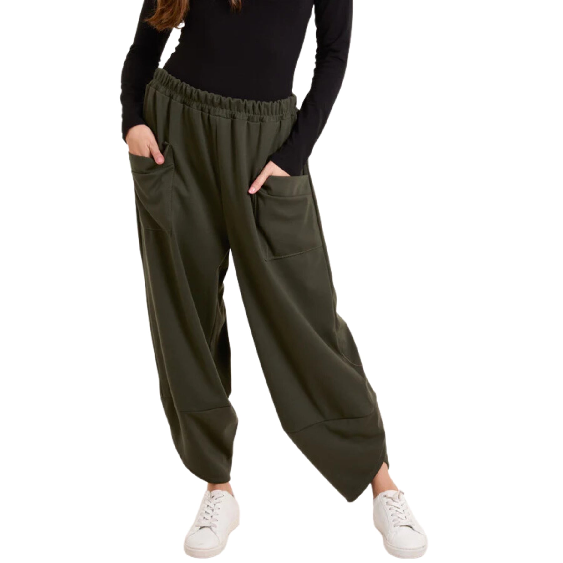 Ruby Jersey Pockets Relaxed Fit Cocoon Joggers | Khaki | One Size