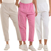 Fans of the classic magic pants will be thrilled to see that they now come in a relaxed version, perfect for the summer months.  Combining comfort and style, these relaxed magic pants still have the same stretch but are not as skinny as the classic magics.  They are great for when the weather is warmer, ensuring you look good but keep cool. These Italian designed trousers have a softly elasticated waistband and wil fit practically any size or shape.  They have two side pockets and look great rolled up or worn long.  They come looking crinkled, but as soon as you slip them on, the crinkles disappear, just like magic.  Best suited to UK Sizes 10 - 16.