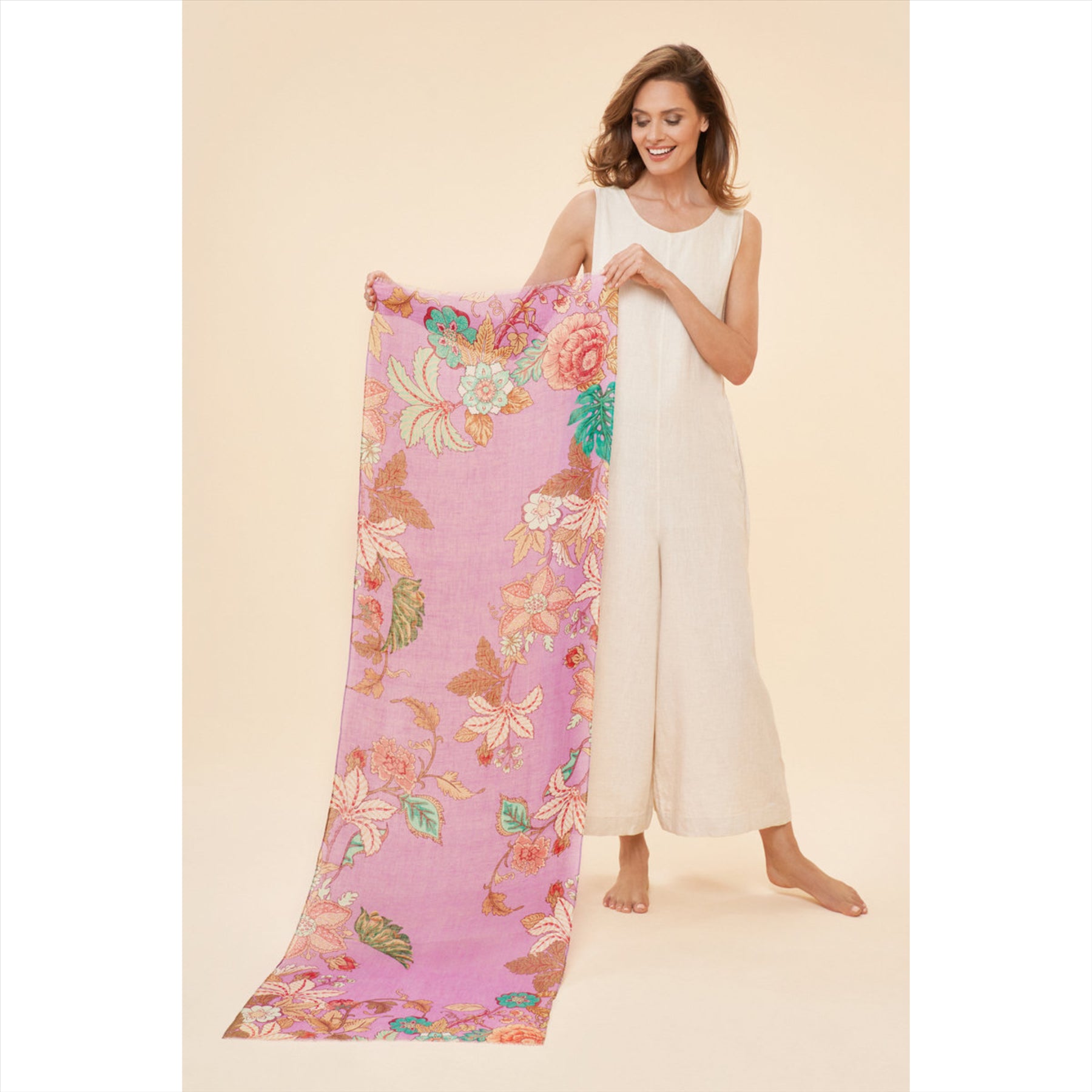 Powder 100% Linen Persian Floral Scarf | Lavender