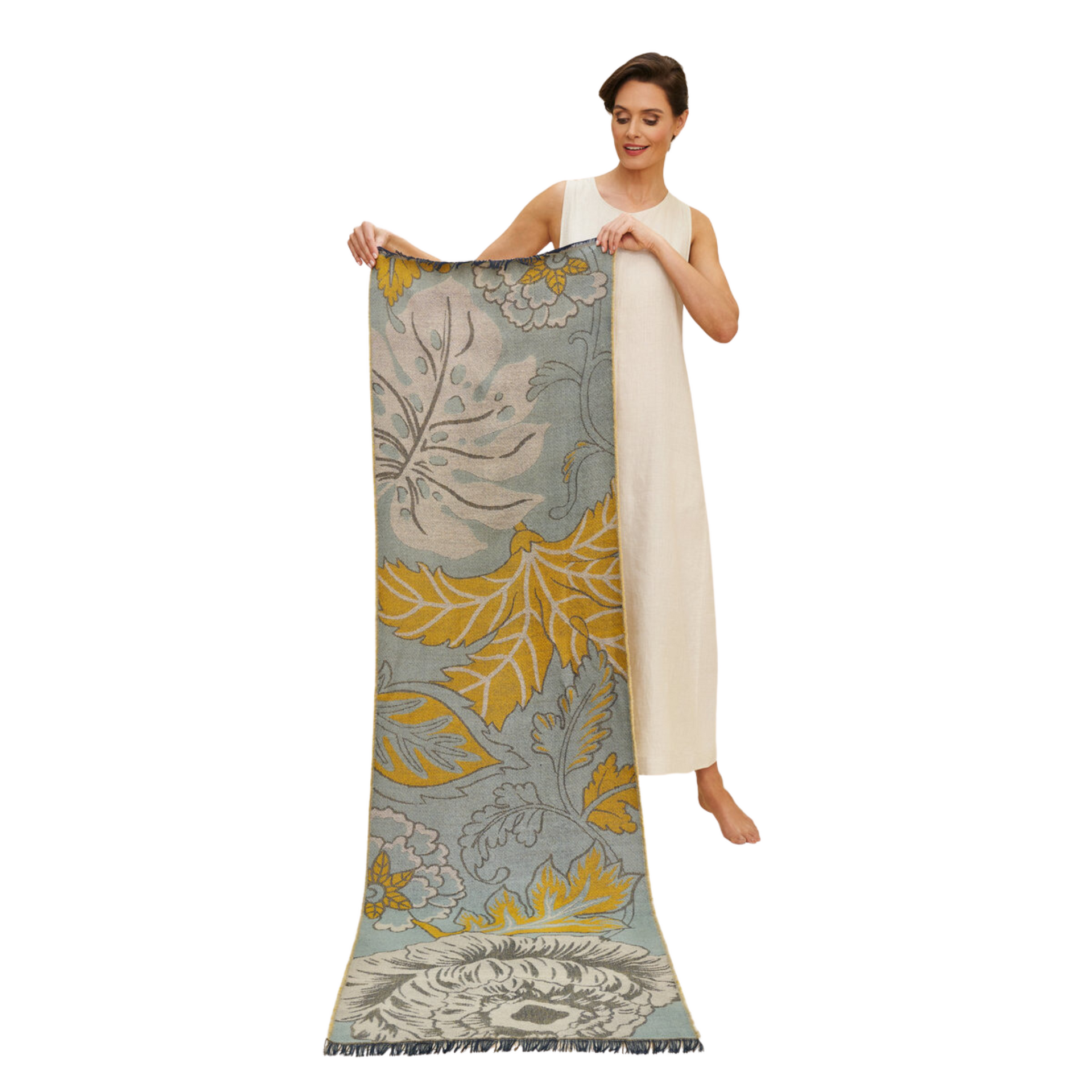 These medium weight woven scarves combine the best of Powder, a beautiful design with a tactile texture. This wild floral design has great scale which gives a lovely tapestry feel. Comes with complimentary gift packaging.