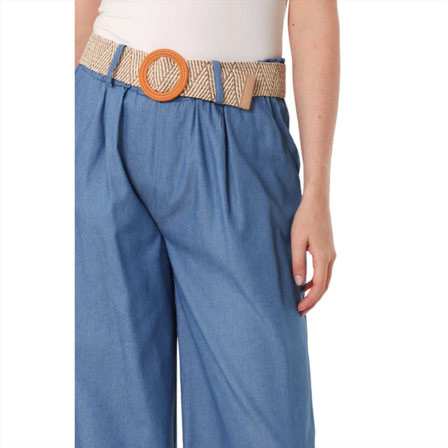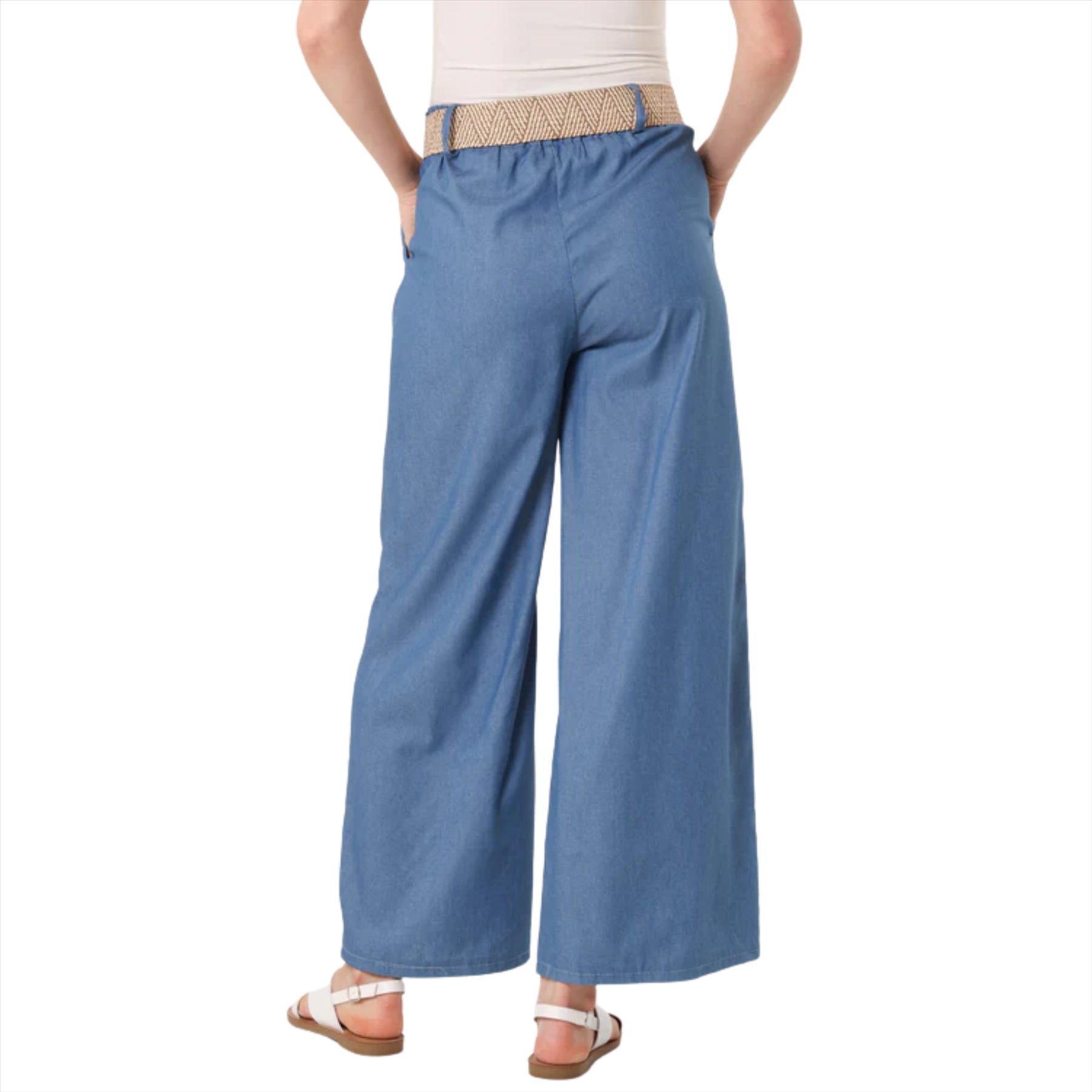 Belted Wide Leg Tencel Trousers | Mid Denim | One Size